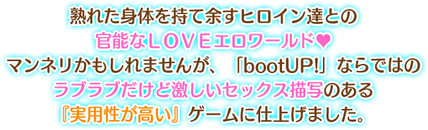 「ヒロイン達の熟れた身体を堪能できるエロシーンの数々、是非、ゲームを買って、体験してみて